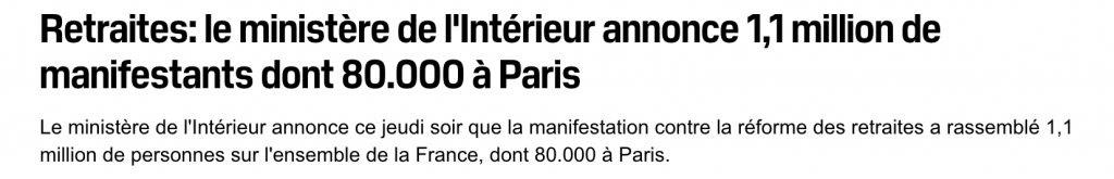 Quand on voit que le ministre de l’intérieur annonce seulement 80 000 manifestants à Paris…😆 il y avait 400 000 manifestants à Paris ! 💪 💪 💪