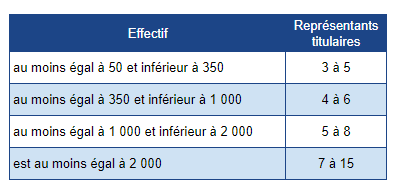 4. d) Lorsque l’effectif est au moins égal à 2 000 : 7 à 15 représentants.