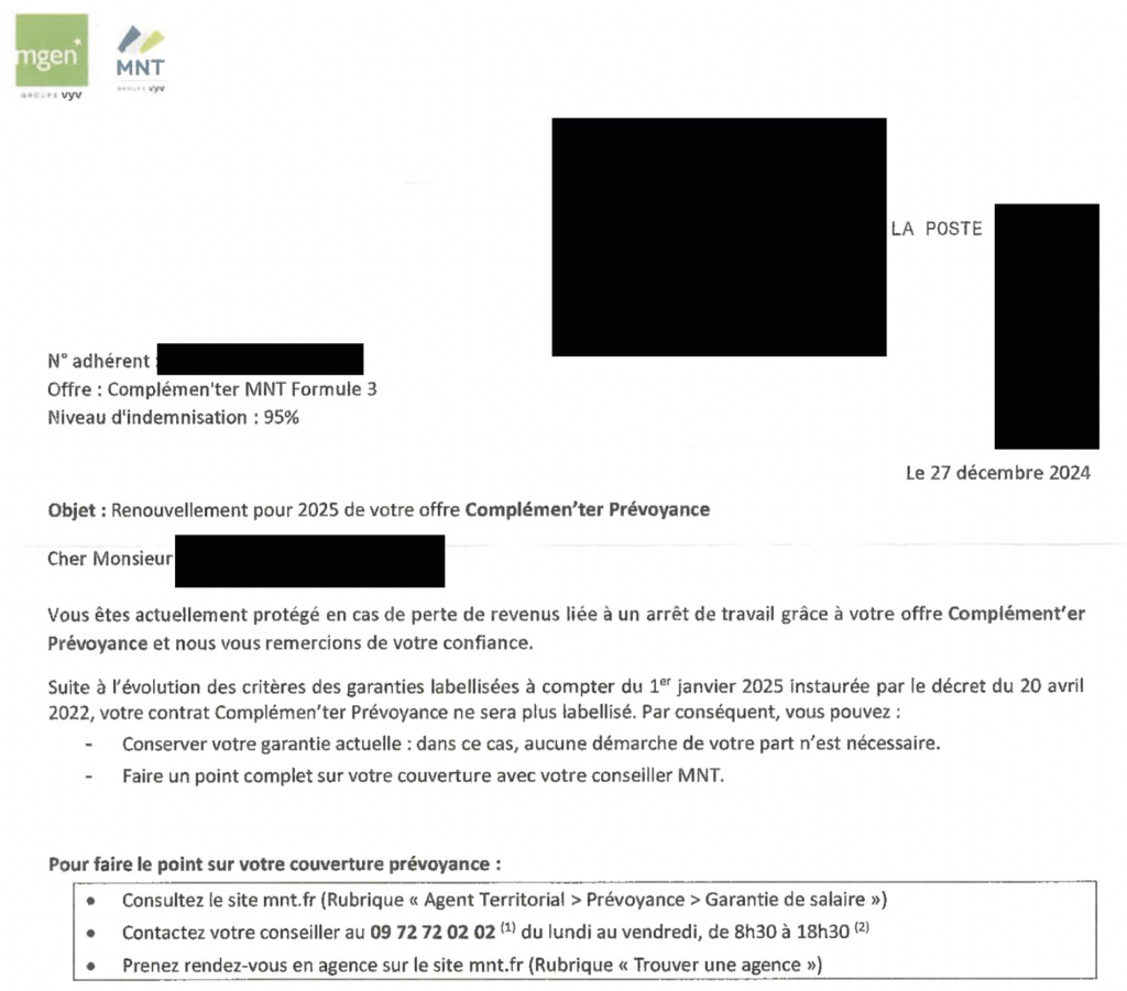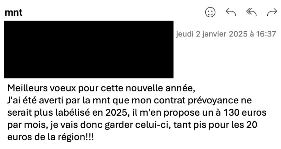 D’autres me disent que leur entreprise de prévoyance, comme la MNT, leur demande de basculer sur un contrat beaucoup plus cher pour conserver la labellisation, avec un résultat final qui vous laissera, de toute façon, perdants financièrement…