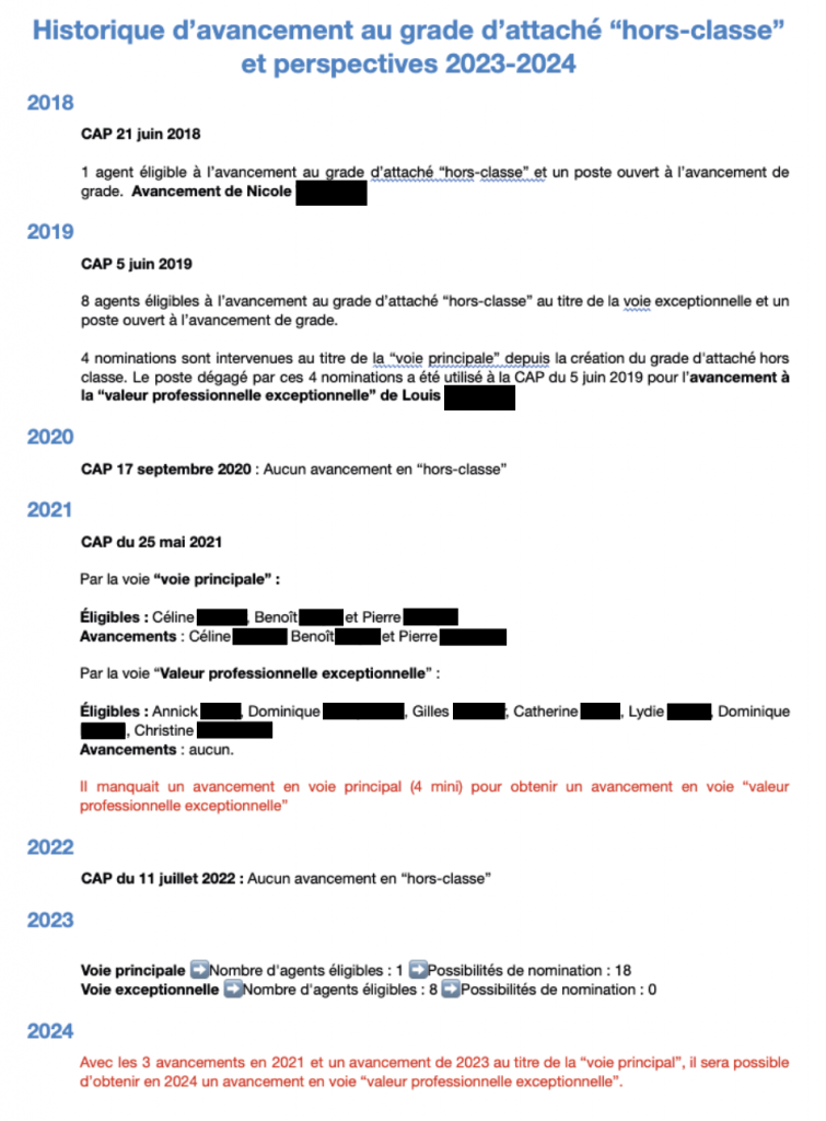 Cette situation ne pose aucun problème dans d’autres collectifs de travail et administrations, comme dans le cas des attachés d’administration parisienne où les chefs de service peuvent légitimement accéder à la hors-classe par la voie principale.