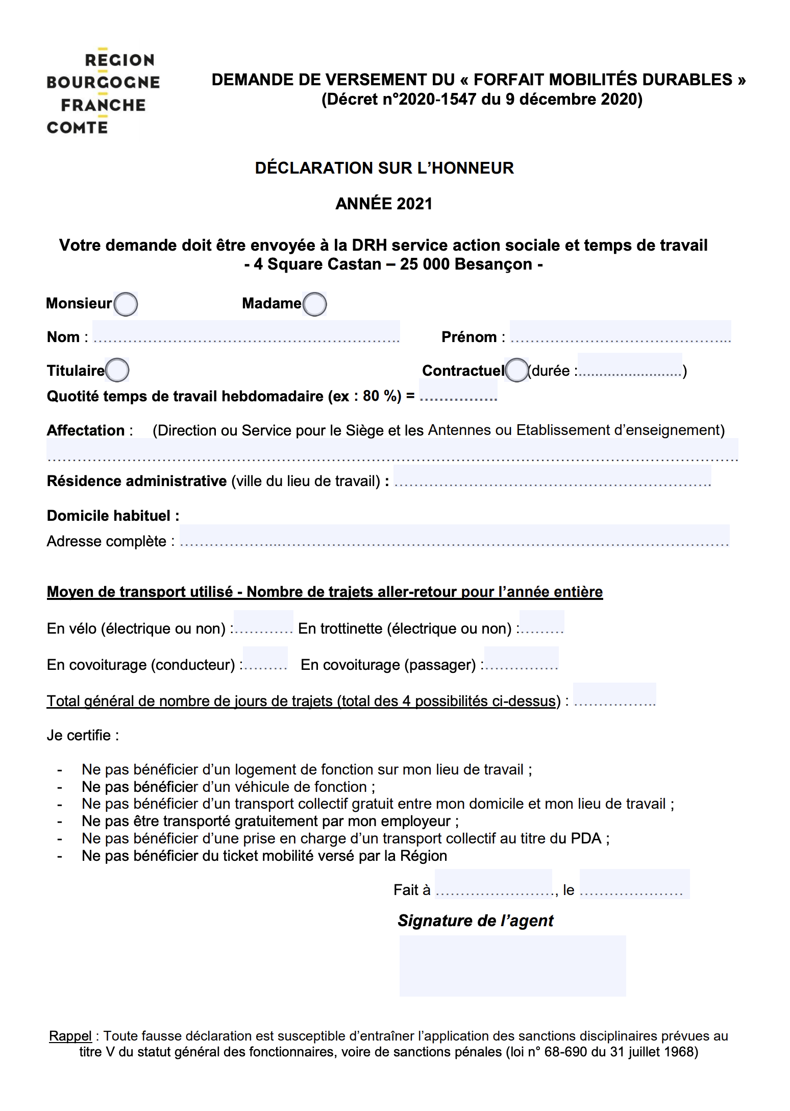 Le formulaire de demande de versement des 200 euros du « FORFAIT MOBILITÉS DURABLES » est enfin publié sur l’intranet