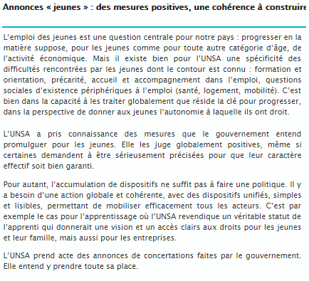 L’UNSA a pris connaissance des mesures que le gouvernement entend promulguer pour les jeunes. Elle les juge globalement positives, même si certaines demandent à être sérieusement précisées pour que leur caractère effectif soit bien garanti.