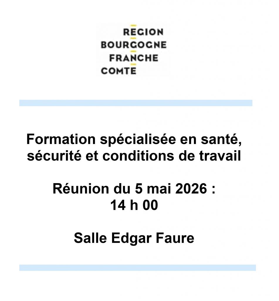 📣 La prochaine réunion de la F3SCT du Conseil régional de Bourgogne-Franche-Comté se tiendra le mardi 5 mai 2026 à 14h00 à Besançon !