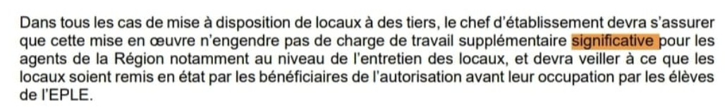 - Suppression du terme « significative » (dans : pas de hausse de charge de travail significative pour les agents) pour préciser que TOUTE charge supplémentaire doit être évitée pour les agents en cas de mise à disposition de locaux.