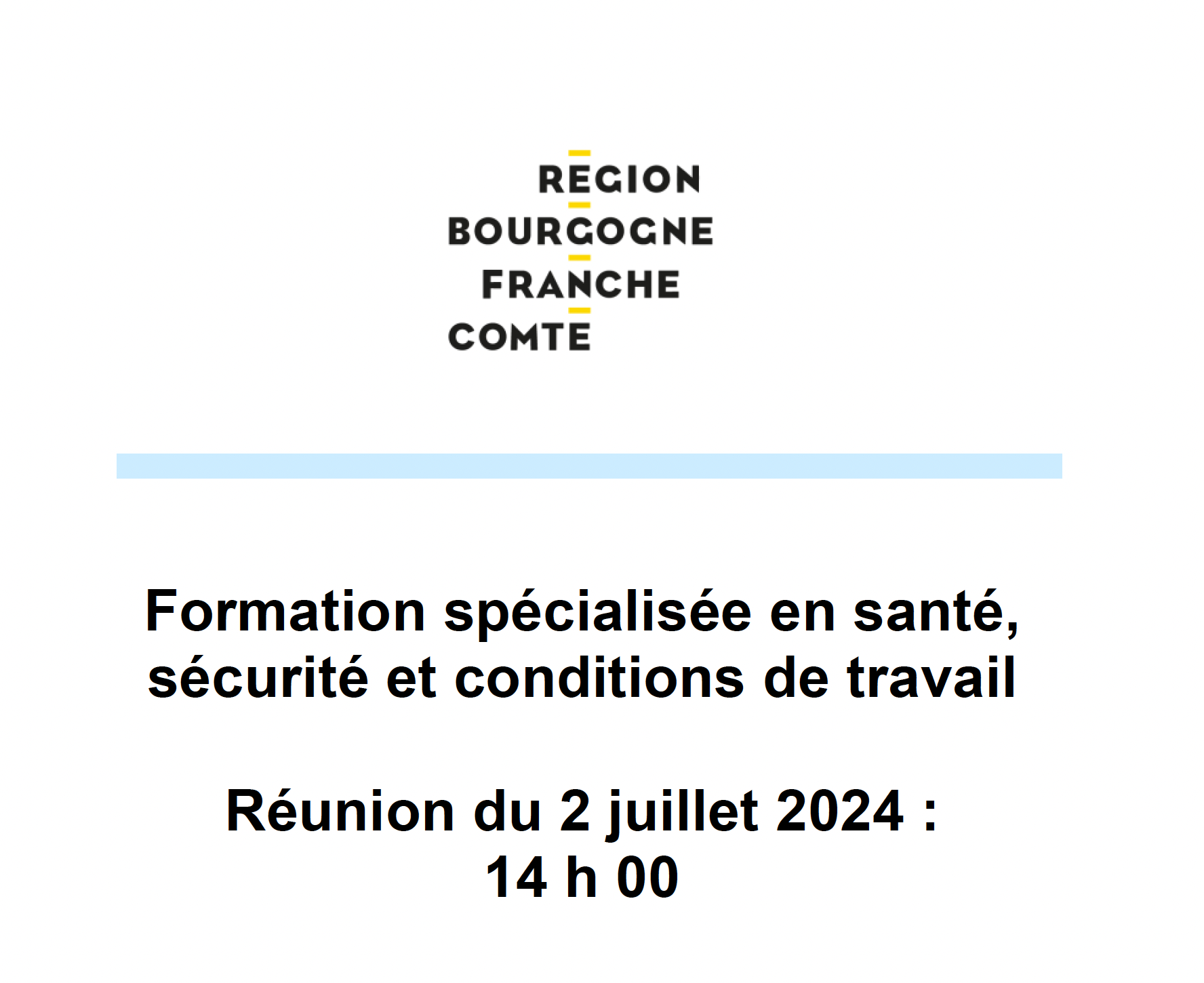 La prochaine réunion de la Formation spécialisée en santé, sécurité et conditions de travail (F3SCT) se tiendra le 2 juillet 2024 à 14h00 à Besançon. Comme d’habitude, vos représentants du personnel UNSA seront présents et à votre disposition pour défendre vos intérêts. Vous pouvez compter sur notre engagement et notre disponibilité en cas de besoin.