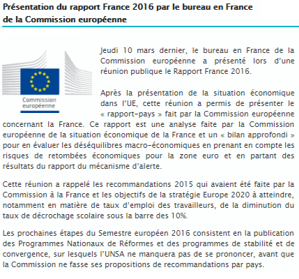 Présentation du rapport France 2016 par le bureau en France de la Commission européenne #UNSA