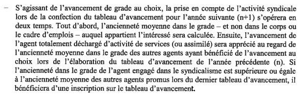 Principe : les agents en activités syndicales ne sont ni favorisés ni pénalisés dans leur carrière.