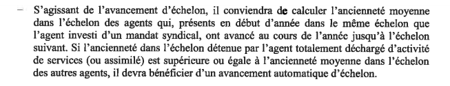 Ces dispositions ont pour objectif d’éviter que la promotion interne des agents investis d’un mandat syndical pour la totalité de leur temps de travail soit considérée comme une nomination pour ordre.