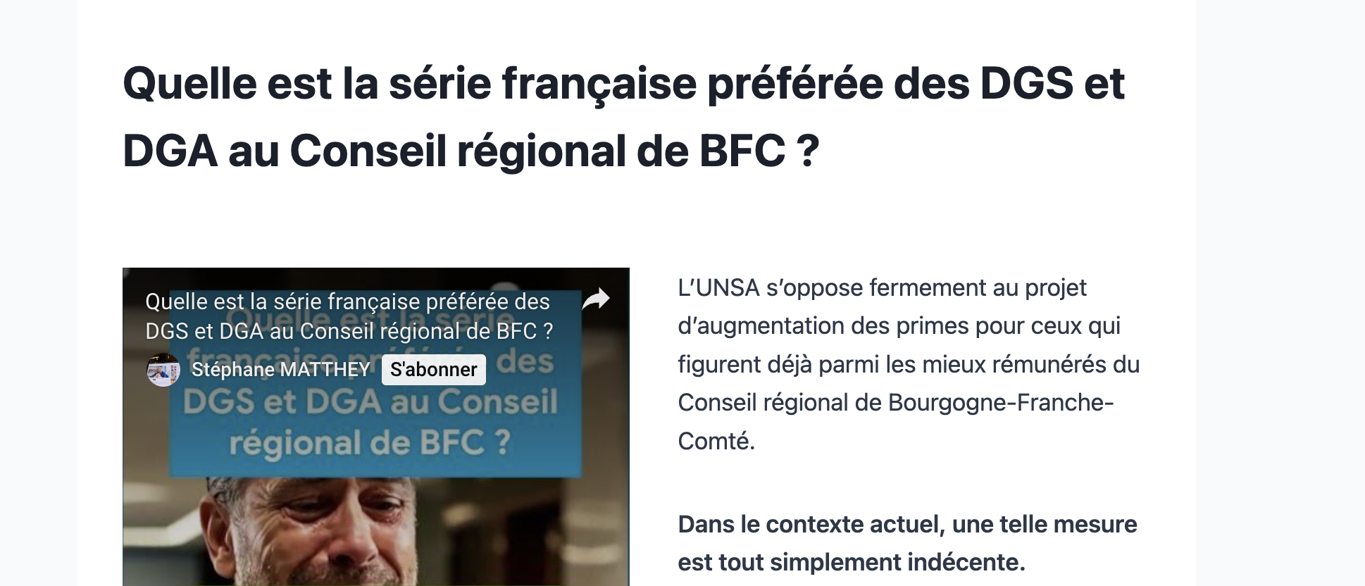 L’UNSA s’oppose fermement au projet d’augmentation des primes pour ceux qui figurent déjà parmi les mieux rémunérés du Conseil régional de Bourgogne-Franche-Comté.