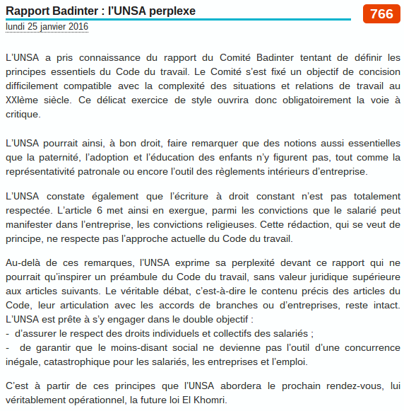L’UNSA pourrait ainsi, à bon droit, faire remarquer que des notions aussi essentielles que la paternité, l’adoption et l’éducation des enfants n’y figurent pas, tout comme la représentativité patronale ou encore l’outil des règlements intérieurs d’entreprise.