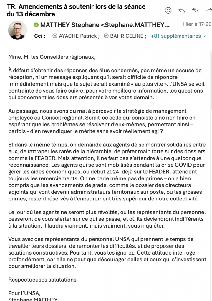 Soyons clairs : si les « responsables du dialogue social RH, lycée, représentants politiques de la Président dans les instances » au Conseil régional avaient fait leur travail, on n’en serait évidemment pas là.