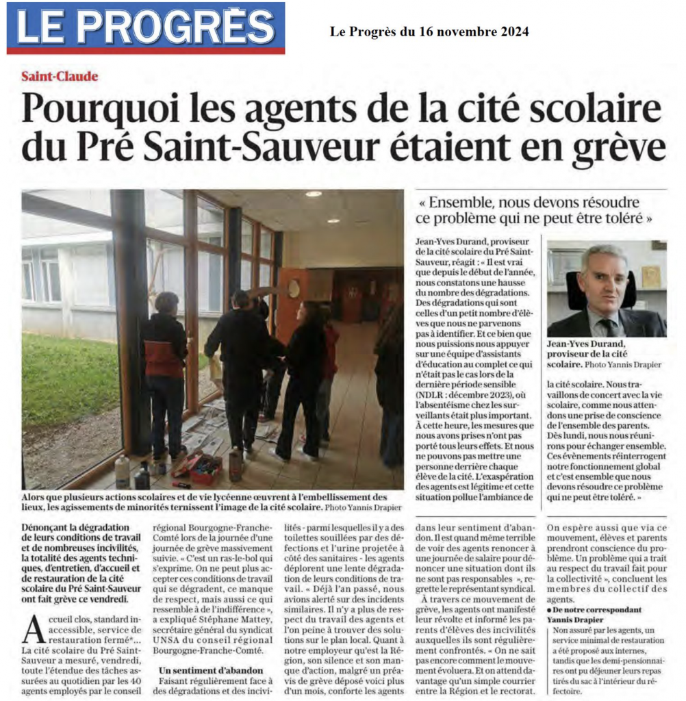 Et pour ceux qui n’ont pas suivi, rappelons les faits : les agents du lycée Pré-Saint-Sauveur subissent des conditions de travail dégradées et un manque criant de respect pour leur mission essentielle.
