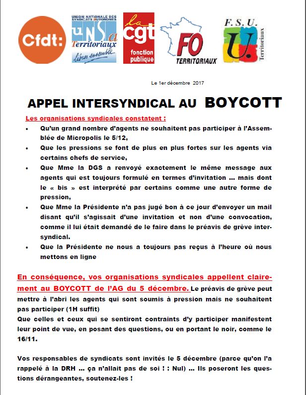 [UNSA] Assemblée Générale des agents du siège le 5 décembre : l’intersyndicale appelle au boycott !