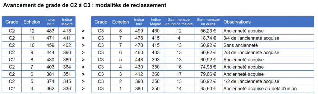 - C3 = troisième grade de la catégorie C = les adjoints principaux de 1ère classe (administratif, technique, ATTP1, ATTP1 EE)