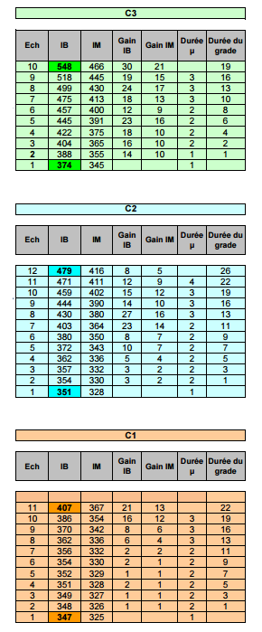 Les conditions de reclassement dans chacun des grades C1, C2 et C3