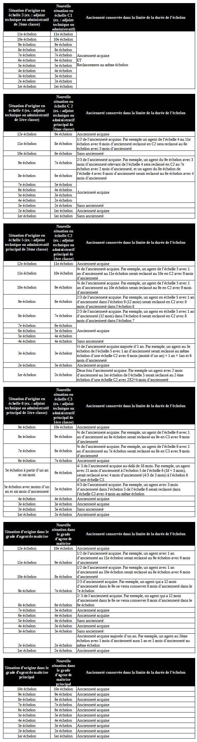 Ex : un Adjoint technique de 1ère classe est reclassé adjoint technique principal de 2ème classe