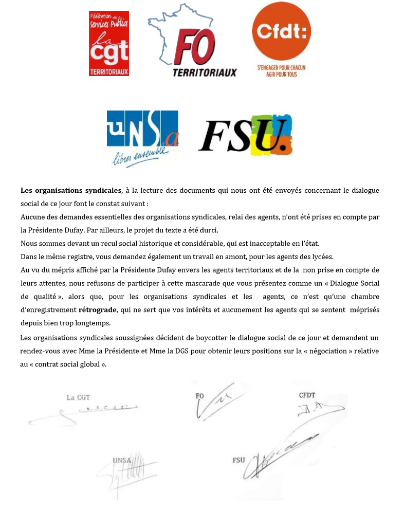 Refus de tous les syndicats du Conseil régional de #Bourgognefranchecomte de siéger dans ses conditions.