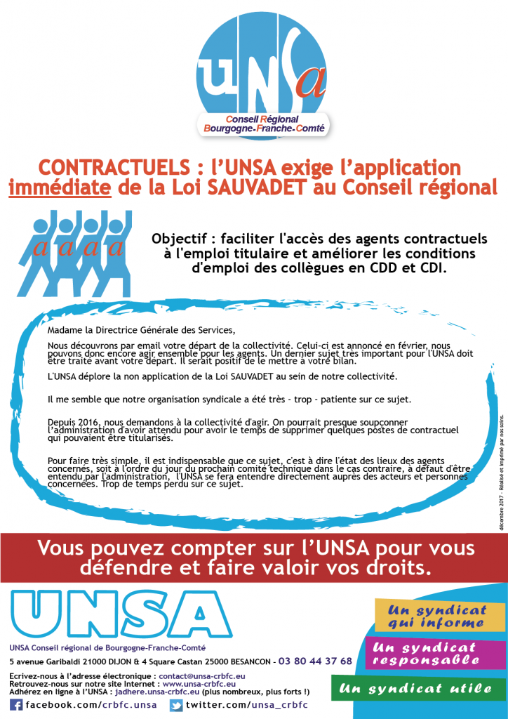 [UNSA] CONTRACTUELS : l’UNSA exige l’application immédiate de la Loi SAUVADET au Conseil régional de #BourgogneFrancheComté
