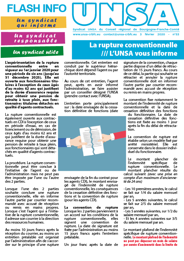 [UNSA] Flash info de l’UNSA n°33 sur la rupture conventionnelle