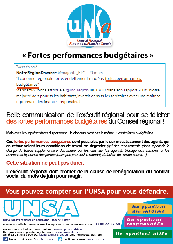 [UNSA] Les « Fortes performances budgétaires » du Conseil régional