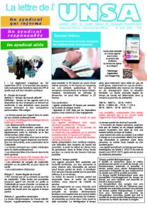 [UNSA] Lettre de l’UNSA n°15 sur Règlement du temps de travail des agents des établissements d’enseignement