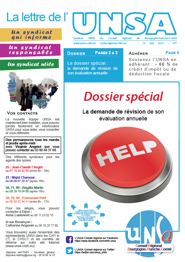 [UNSA] Lettre de l’UNSA n°7 – Dossier spécial sur la procédure de révision de son évaluation annuelle