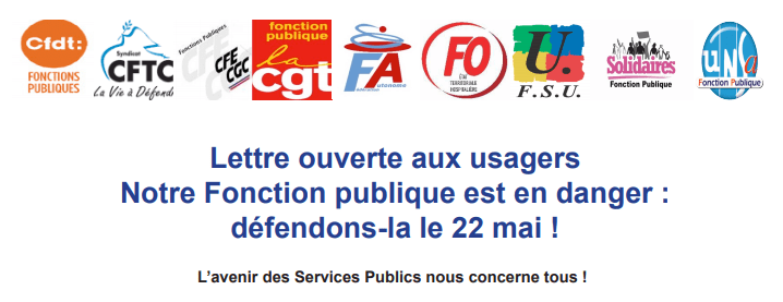 Afin d’expliquer à tous les français les raisons de la mobilisation du 22 mai, les 9 organisations syndicales de la Fonction Publique s’adressent à eux.