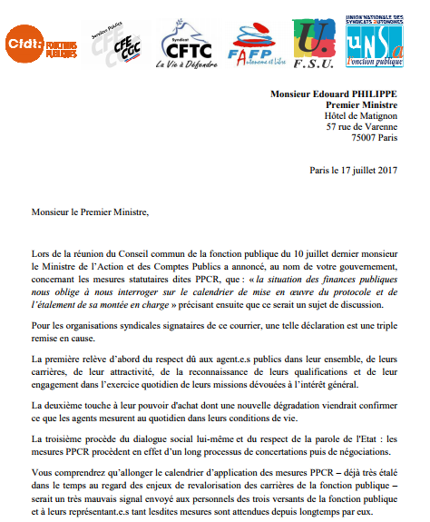 Vous trouverez ce courrier envoyé à la Presse le 17 juillet ici : courrier_ppcr_17_07_17.