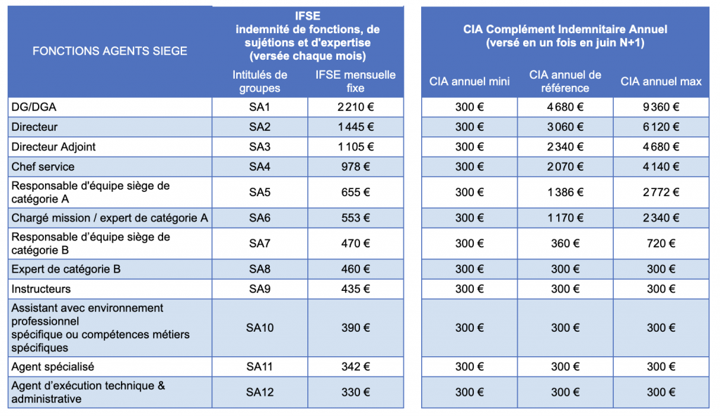 [UNSA] Régime indemnitaire sièges au 1er janvier 2021