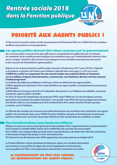 L’UNSA demande au gouvernement de revaloriser les rémunérations des agents publics.