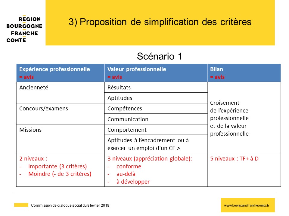 Globalement, l’administration souhaite simplifier le dispositif de point attribué pour la partie expérience professionnelle sur 3 critères :