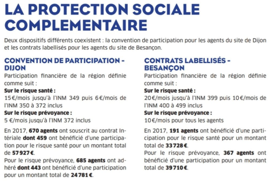 - Et évidemment une participation sur le volet “santé” qui soit au minimum celui de la Franche-Comté (20 euros par agent et par mois).
